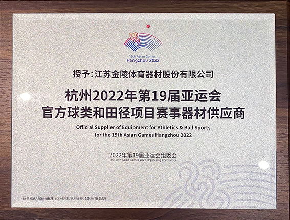 金陵體育被授予杭州2022年第19屆亞運會官方球類和田徑項目賽事器材供應商